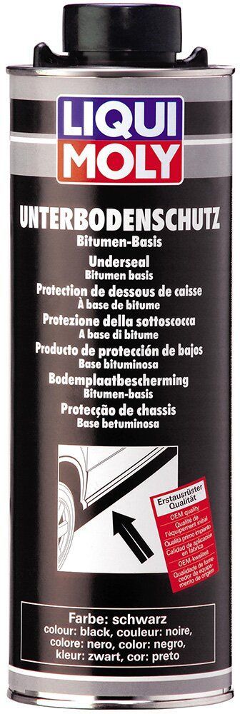 Liqui Moly Unterbodenschutz - Антикор для днища кузова битум/смола, цвет черный - это тиксотропная смесь битумов, синтетических смол, растворителей и специальных ингибиторов. После испарения остается вязкая, эластичная пленка, защищающая от воздействия окружающей среды и коррозии под воздействием рассыпной соли.  Средство для защиты днища, цвет черный, обладает хорошими антикоррозионными свойствами. Продукт тиксотропный и поэтому наносится без образования капель. Это позволяет наносить толстый слой за одну рабочую операцию. Покрытие устойчиво к истиранию, также является и шумоизолирующим слоем.
