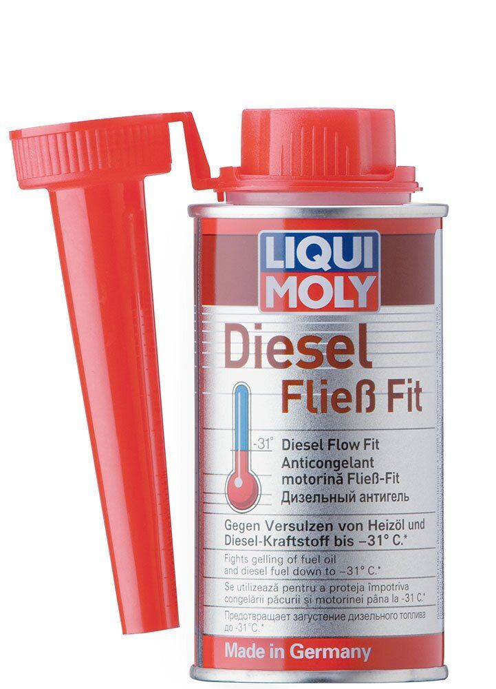 Дизельный антигель Liqui Moly Diesel fliess-fit (депрессорная присадка в дизельное топливо). Представляет собой комбинацию различных высоко-молекулярных, беззольных химических соединений. Дизельный «антигель» Liqui Moly Diesel fliess-fit предотвращает сращивание парафиновых кристаллов, выпадающих в дизельном топливе при низких температурах. Таким образом, дизельное топливо не теряет подвижность и свободно циркулирует по топливным магистралям автомобиля, свободно проходя через поры топливных фильтров. Эффективность «антигеля» зависит от фракционного состава дизтоплива и наличия в нем аналогичных присадок.