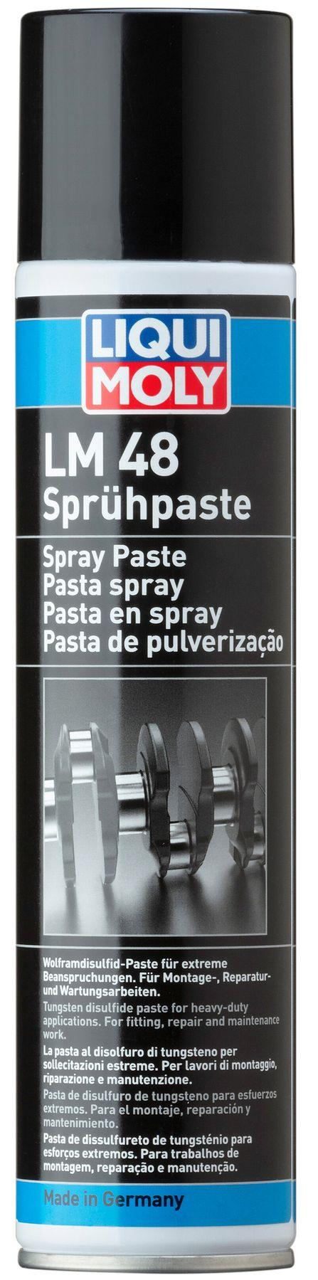 LM 48 Spruhpaste содержит мелкодисперсный порошок дисульфида молибдена и графита, являющихся эффективными антизадирными и антифрикционными веществами. При распылении и после высыхания препарата образуется антифрикционный разделяющий поверхности слой, препятствующий схватыванию, задиру и холодной сварке. Антифрикционный слой работает как смазка и приработочная паста, позволяя без повреждений произвести обкатку деталей. Смазка сохраняется на деталях как пожизненная.