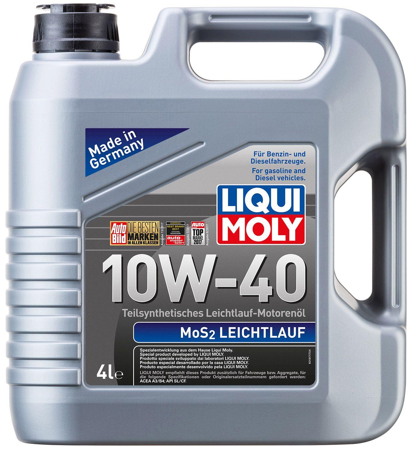 Полусинтетическое моторное масло "с молибденом" Liqui Moly MoS2 Leichtlauf 10W-40 на основе полиальфаолефинов для всесезонного применения в бензиновых и дизельных моторах