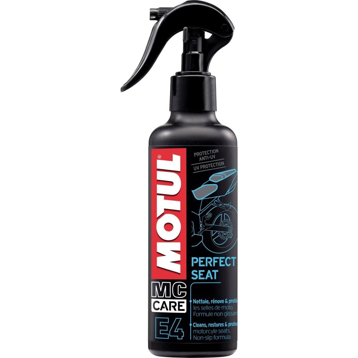 При значительном загрязнении сиденья, рекомендуется воспользоваться MOTUL E2 MOTO WASH. Перед применением взболтать. Равномерно распылить на расстоянии 20 сантиметров. Дать высохнуть несколько минут. Протереть сухой мягкой тканью.